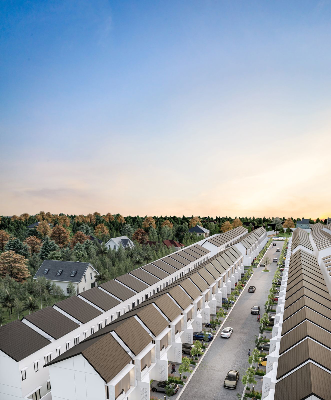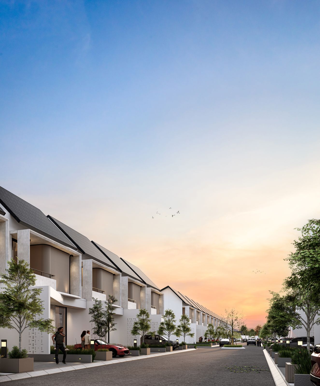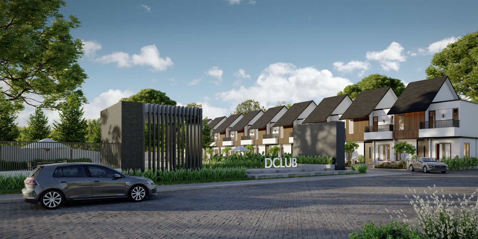 Proyek residensial dan commercial area yang dilengkapi fasilitas clubhouse dengan kolam renang.